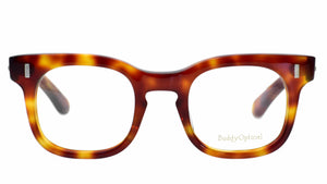 眼鏡を生業とする人々が共通して願う事は、眼鏡を着用する人口の増加です。その為には眼鏡がもっと身近な存在になる事が必要です。それは「気心の知れた仲間や、相棒の様な存在」である事。そしてライフスタイルの中に自然とある「ワードローブ」の様な存在である事。私たちは早速、これらの条件を満たす最良のレンズの選定・フレームデザインを考え始め、眼鏡の生産に取り掛かりました。そして、それらの眼鏡を「BuddyOptical」と名付けました。〈Buddy〉とは英語で親友や相棒を意味し、戦友の様なとても近しい存在を表します。また眼鏡をかけて人前に出る事が美徳とはされなかった時代に、そういった人々の意識を一気に変えさせた偉大なるミュージシャンのイメージを反映したものです。誰もがこの眼鏡に親しみを持ち、そしてクールでいられるように。