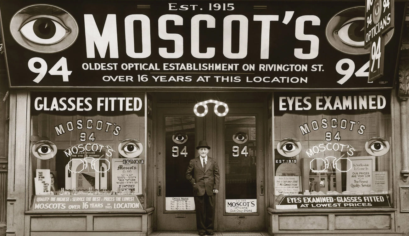 創業者のハイマン・モスコットは手押し車での行商からスタートし、ニューヨークで1915年に眼鏡店として誕生。過去に生み出された均整の取れた美しいデザインに敬意を払い、またファッションにもフィットするようアップデートされたコレクション[ MOSCOT Originals ]は多くの歴史的人物や著名人らが愛用してきたことでも有名です。ニューヨークのロウワーマンハッタンに構えられた眼鏡店は歴史と権威のある眼鏡屋として今なお愛され続けています。1930年代に生まれたプラスチック製の眼鏡は、安価でなおかつ簡単に生産できるものとして政府のバックアップのもと生まれましたが、その後はクラーク・ケントやバディ・ホリー、ウッディ・アレン、アレン・ギンズバーグを始めとする当時のアーティストや文化人・作家達に愛されトレードマークとなってきました。